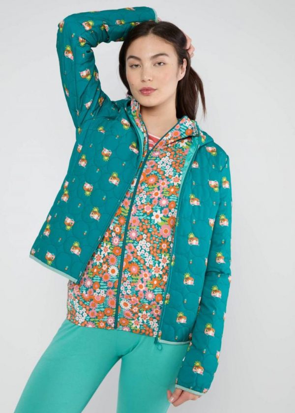 Artikelnummer: 001251-003-01431-MHauptstoff:Polyester (recycelt) 90%, Elasthan 10%Futter:Polyester (recycelt) 100%Füllung:Polyester (recycelt) 63%, Elastomultiester 37%Reißverschluss in der vorderseitigen Mittepraktische Eingriffstaschen mit Druckknopfverschlusselastische Ärmelabschlüssesportlich geschnittene Kapuzekomfortables RutschfutterBlutsgeschwister Patch am linken Oberarmin Unifarben und mit Allover-Print erhältlich