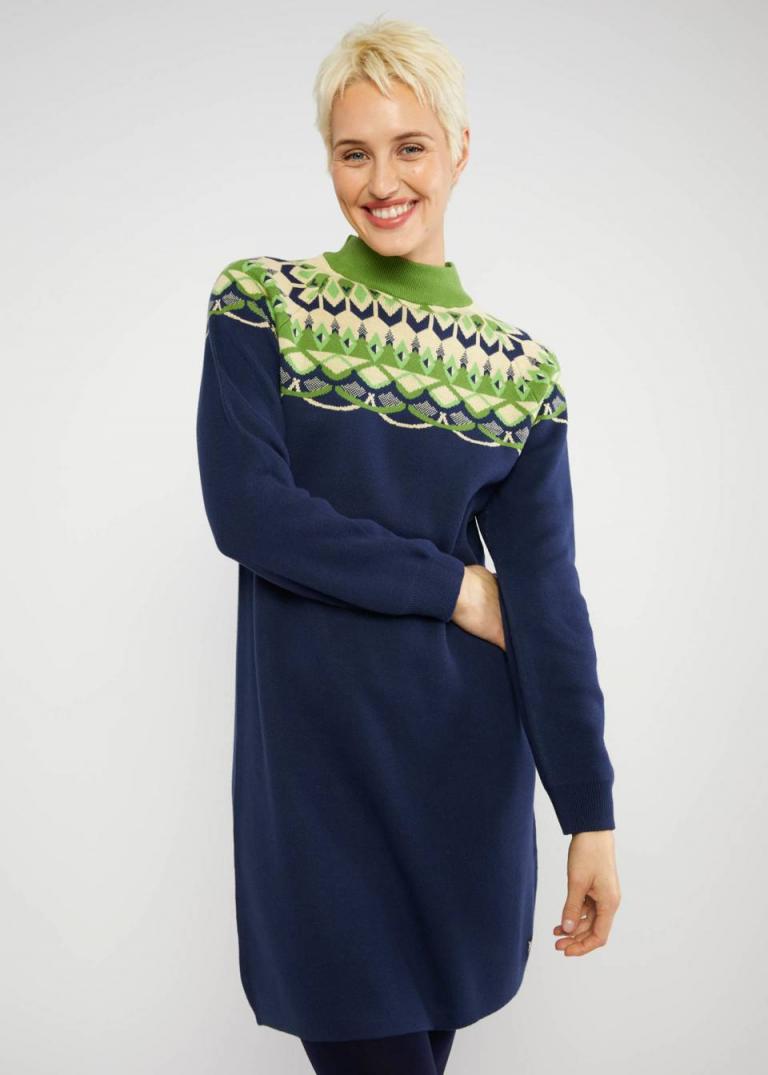 Artikelnummer: 001243-350-1253-MHauptstoff:Baumwolle (Bio) 70%, Lyocell (TENCEL) 30%leger/lockerLänge: knielanghalsnaher, anschmiegsamer Stehkragenanschmiegsame Rippenstrickbündchenaufwendiges Multicolour-Strickmuster im Oberteildetailverliebtes Brand-Patch in Saumnähe