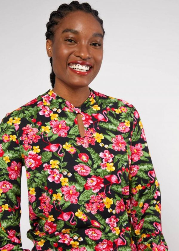 Artikelnummer: 001243-148-1160-MHauptstoff:Viskose (LENZING ECOVERO) 95%, Elasthan 5%aus weichem Viskose-Jerseyleger/lockerÄrmel: Langarmeleganter Blusen-Charakterraffinierter Ausschnitt mit Knotenarrengemant und Dekollete-Schlitzweite Ärmel mit schmalen, eingefassten Bündchen
